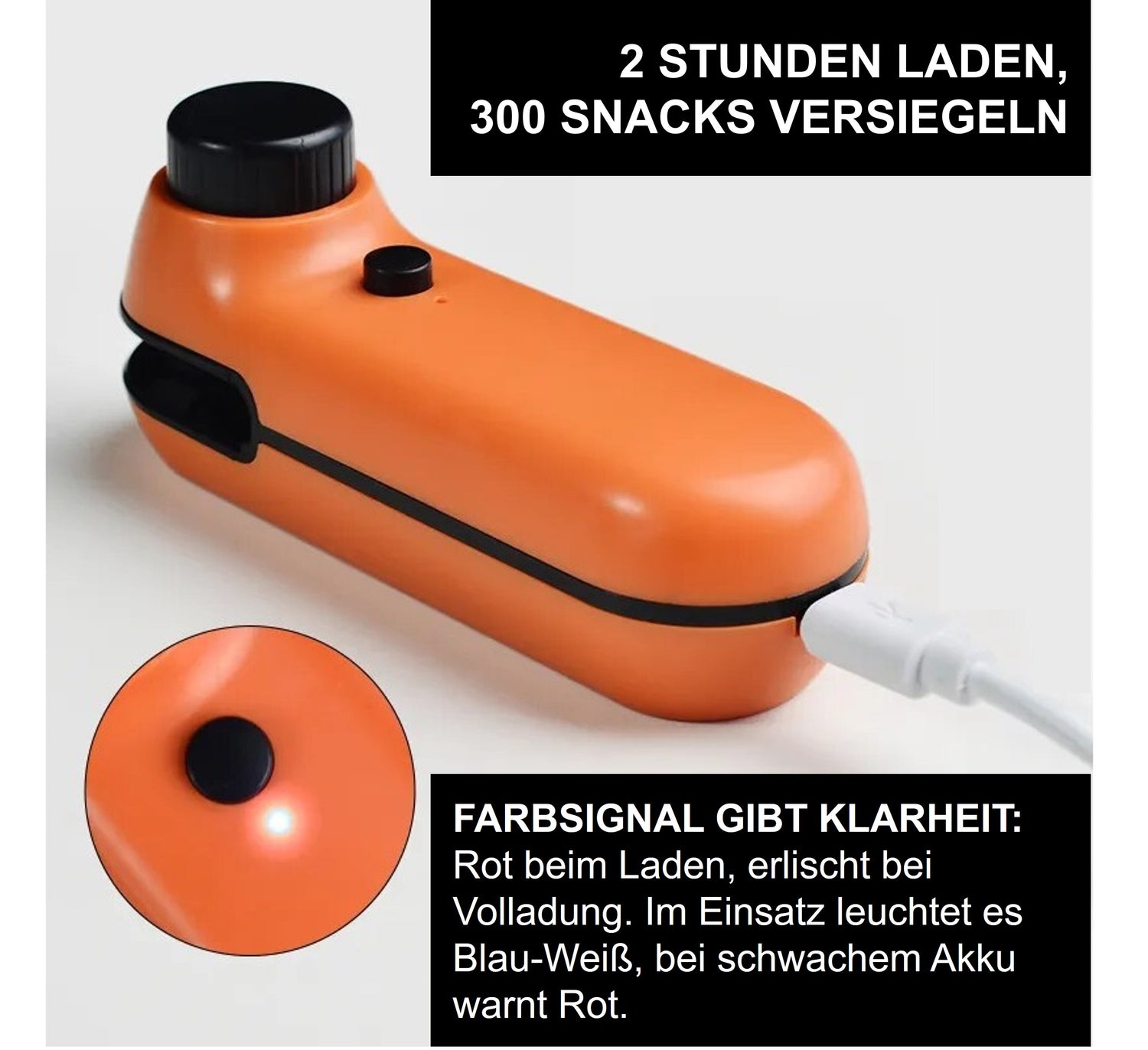 Lade das Gerät nur zwei Stunden lang auf und versiegle anschließend bis zu 300 Snack-Packungen, um deine Lebensmittel frisch zu halten.