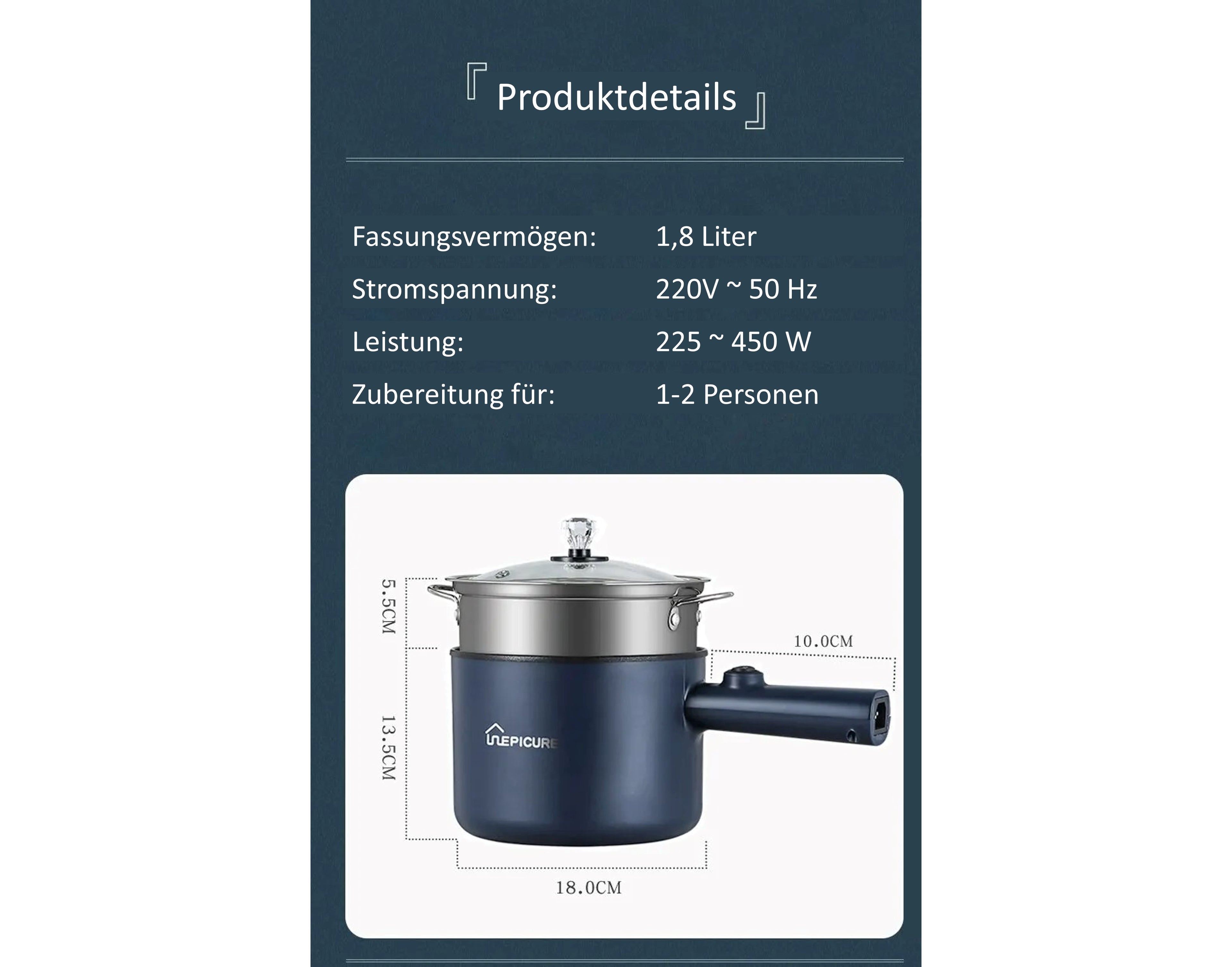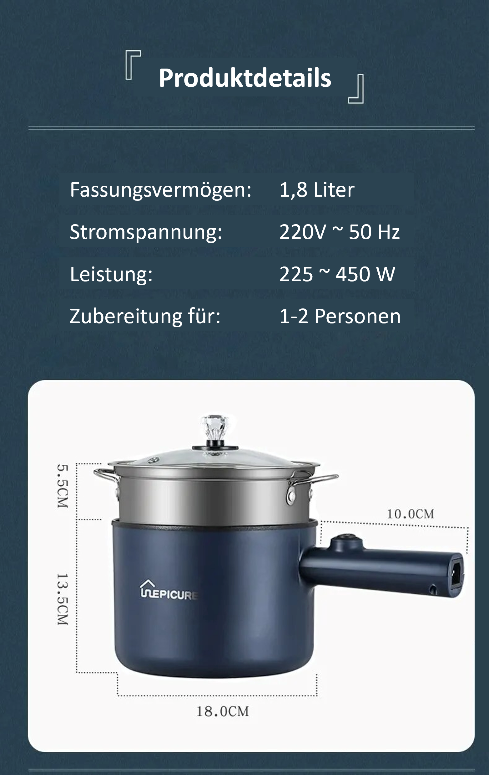 🔌 Elektrisch & Effizient: Spart Energie und Zeit mit 220V und 450W Leistung. Ideal für schnelle und energieeffiziente Zubereitung Ihrer Lieblingsspeisen.