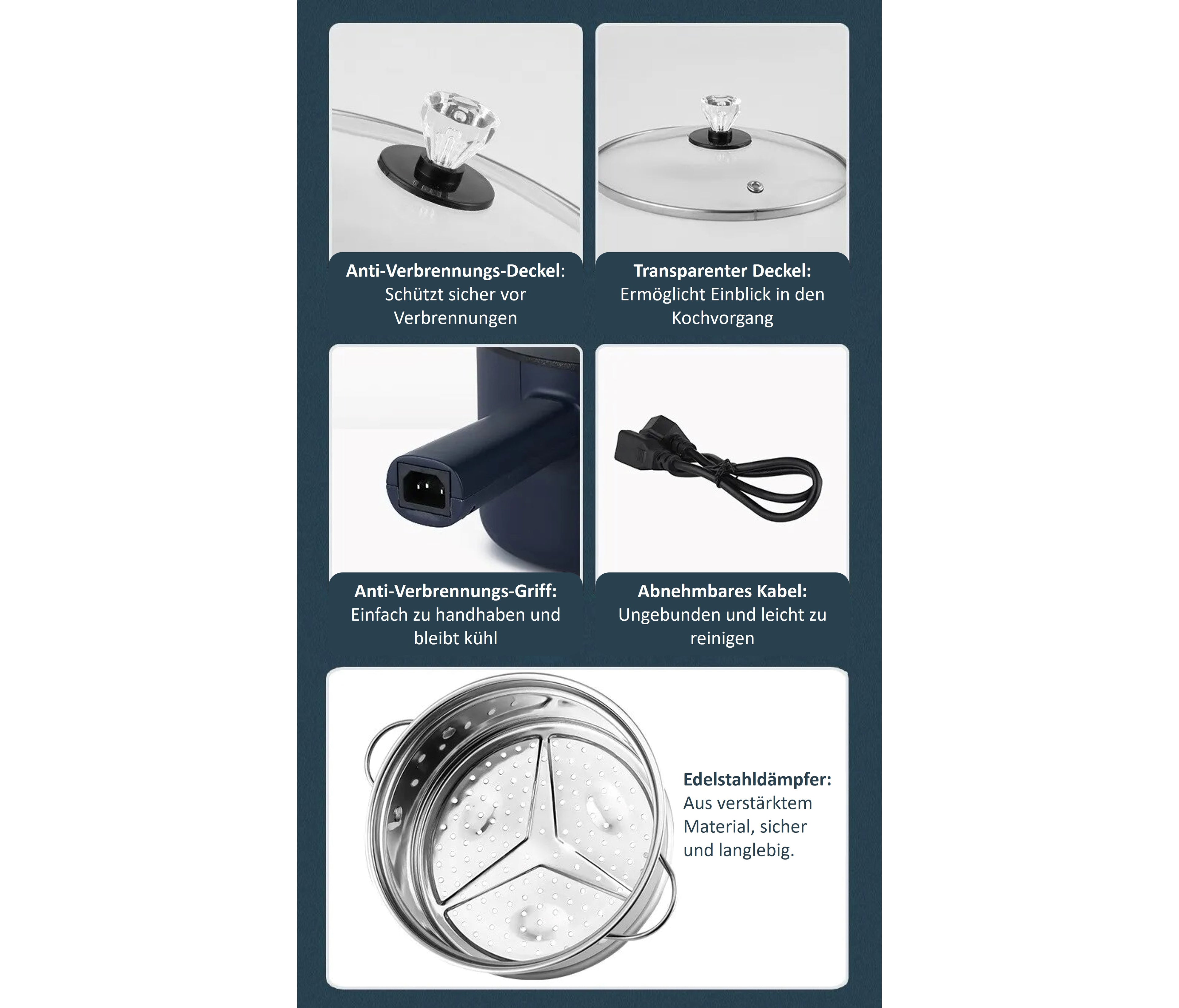 🍲 Dual-Layer-Design: Kochen Sie zwei Gerichte gleichzeitig und sparen Sie wertvolle Zeit. Perfekt für Mehrpersonenhaushalte oder Menüs mit mehreren Gängen.