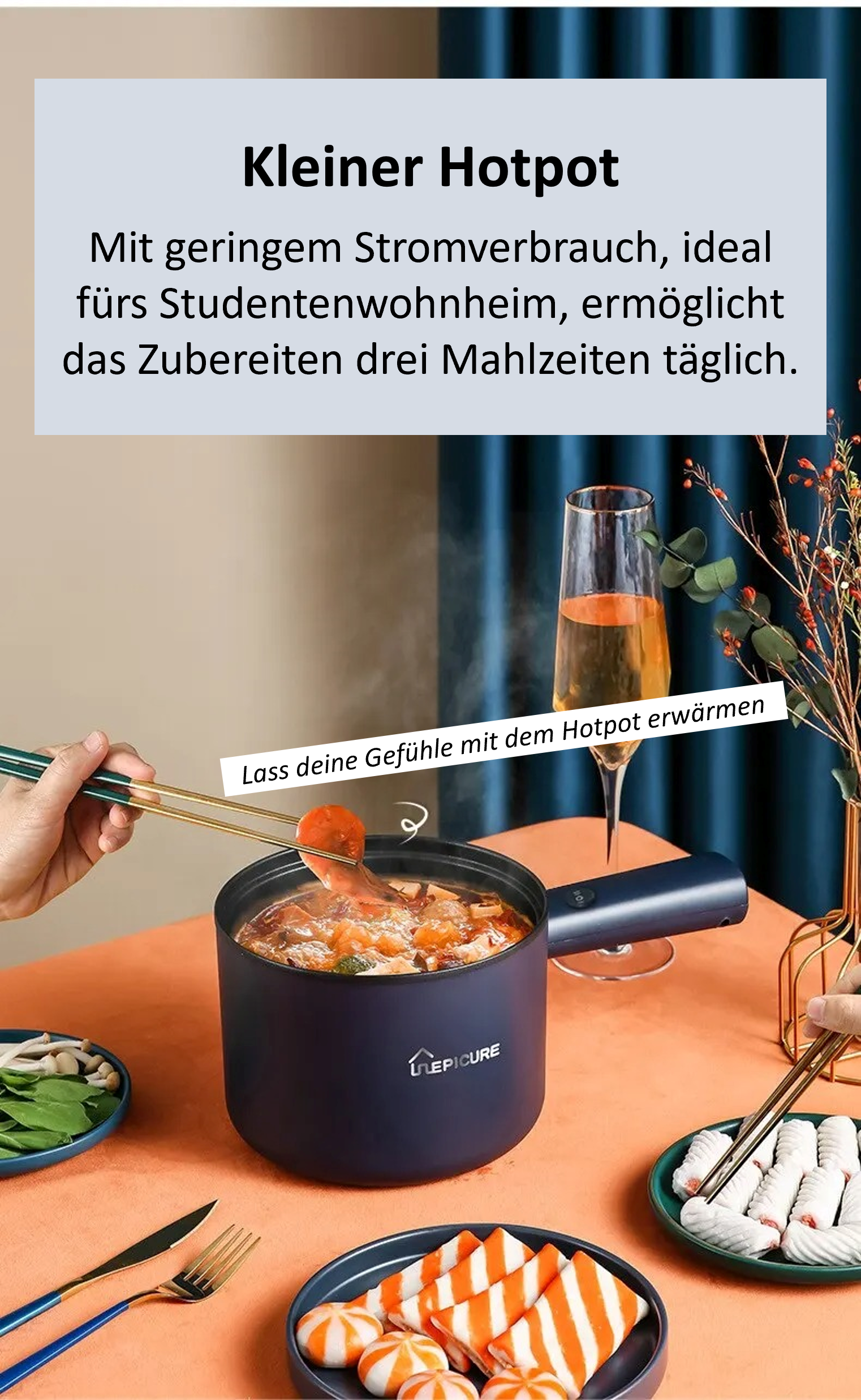 Erleben Sie die Freiheit, überall schnell und einfach köstliche Mahlzeiten zuzubereiten – mit dem elektrischen Mini Multifunktions-Kocher. Perfekt für kleine Wohnungen, Outdoor-Abenteuer oder jeden, der schnelle und unkomplizierte Gerichte liebt. Dank seiner kompakten Größe und Vielseitigkeit ersetzt er eine ganze Küche an Geräten und ist dabei kinderleicht zu bedienen.